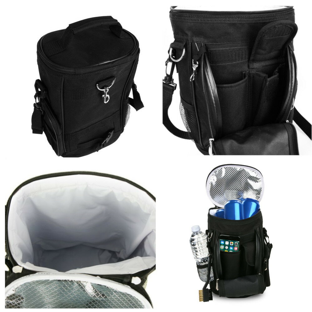 このゴルフ専用保冷バッグは、サイドメッシュボトルホルダー、ティーポケット、ジッパー式サイドポケット、貴重品をしまうフロントジッパー式サイドポケット、保冷剤ポケットなど、多機能が付いています。キャディバッグやカートに引っ掛けることもでき、便利です。