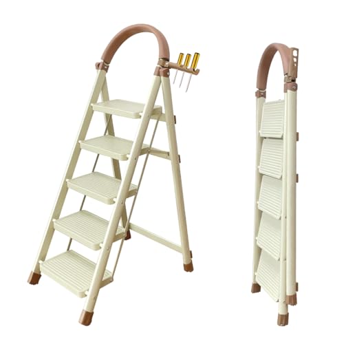 クリームベージュのワントーンカラーがインテリアに自然に溶け込みます。幅広で滑り止め付きのステップが安定感を提供し、安心して作業が可能です。