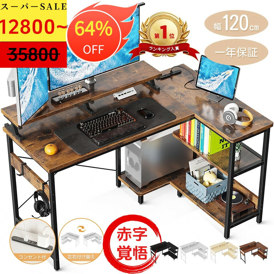 幅120cmのコンセント付きL字型デスクは、美しい見た目と快適性を兼ね備えています。必要なものを手の届く範囲に置けるのでゲーム効率が向上します。L字型天板には使いやすいコンセントとUSBポートが付いており、スマホの充電やデスクライト用に便利です。天板は広く、パソコンや書類を広げて作業できます。